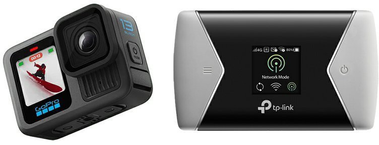 Outdoorová kamera – odolná a vodotesná do hĺbky 10 m, HyperSmooth 6.0, integrovaný 360° zámok horizontu, HLG HDR video, 10-bitové farby + kódovanie s funkciou LOG, GPS + výkonnostné štítky, funkcie HindSight, Scheduled Capture a Duration Capture, Live stream LTE WIFI MODEM TP-LINK M7450Premeň HERO13 Black na ultimátnu streamovaciu kameru. Vďaka kvalitnému LTE WiFi modemu TP-Link M7450 sa môžeš spoľahnúť na bezproblémové streamovanie (až 300 Mbps sťahovani
