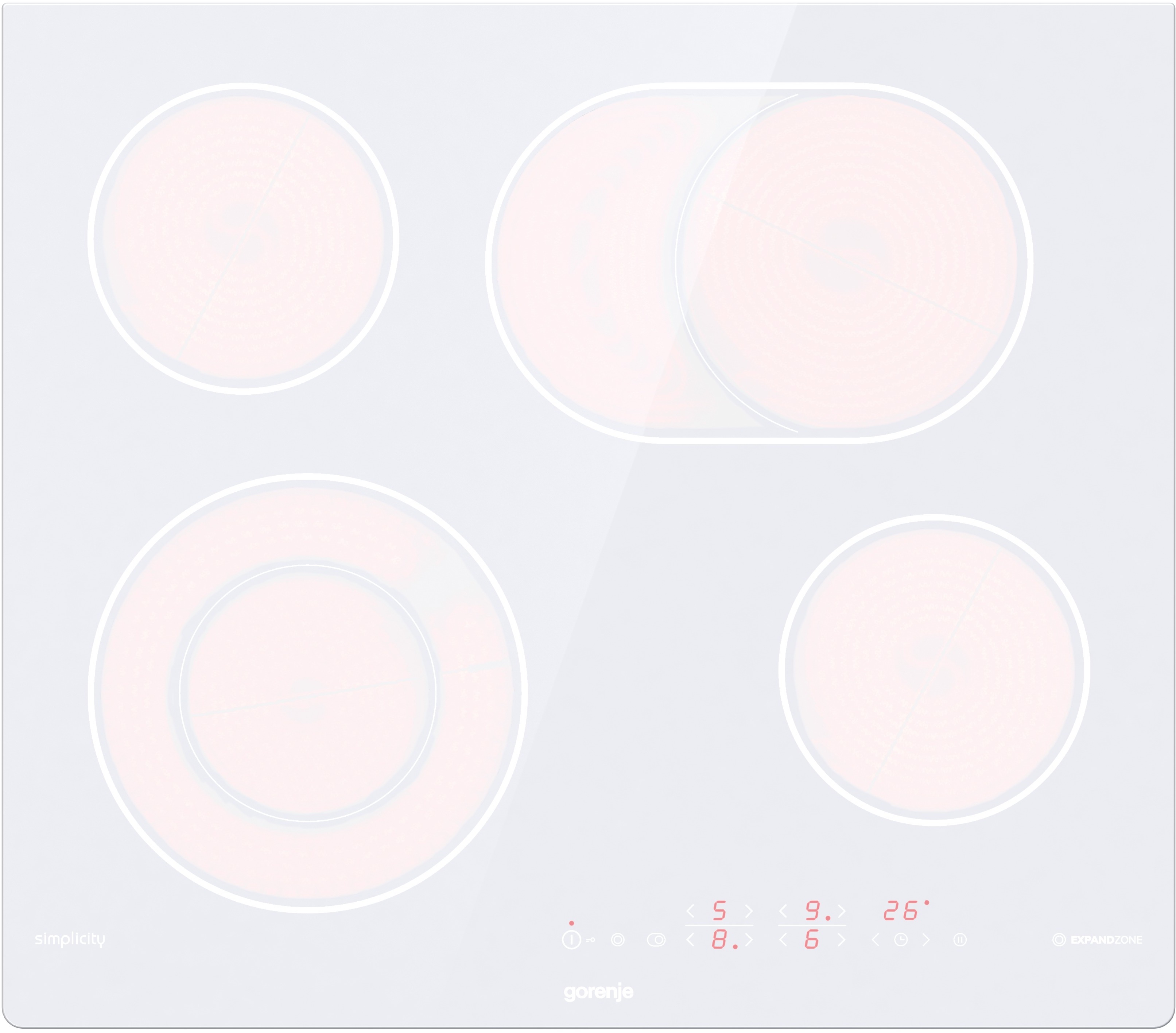 Varná doska – sklokeramická, vstavaná, 4 platničky, detská poistka, udržiavanie teploty a prerušenie varenia, časovač, dotykové ovládanie, skosené hrany, bez rámika, vzhľad biele sklo, povrch sklo, pripojenie 230 V a 400 V, rozmery 60 × 52 × 5,4 cm (Š×H×V) Select brand: Varná doska GORENJE ECT643SYWPoužívanie varnej dosky vám uľahčí a spríjemní praktický časovačSklokeramická varná doska sa ľahko udržiava čistáVarná doska GORENJE ECT643SYW bez