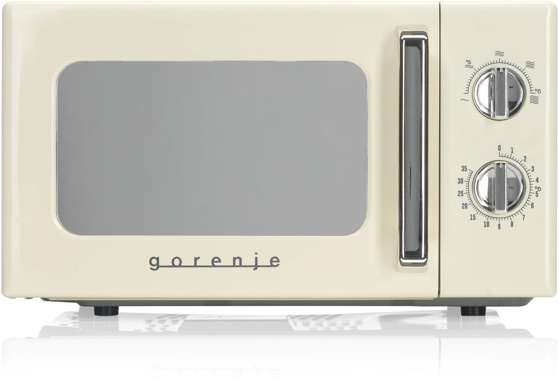 Mikrovlnná rúra – voľne stojacia, príkon 1100 W, manuálne ovládanie, vnútorný objem 20 l, 5 úrovní výkonu, 700 W výkon mikrovlnného ohrevu, 25,5 cm otočný tanier, rozmrazovanie a automatický čistiaci cyklus, časovač, otváranie dvierok doľava, vonkajšie rozmery 26,1 × 45,5 × 32,6 cm (V׊×H), vnútorné rozmery 21,9 × 30,15 × 30,2 cm (V׊×H) Mikrovlnná rúra GORENJE MO20E1HRLMikrovlnná rúra GORENJE MO20E1HRL zaujme na prvý pohľad štýlovým retro dizajnom, ktorý dodá kuchyni osobitý charakter a zároveň ponúkne praktické funkcie na každodenné