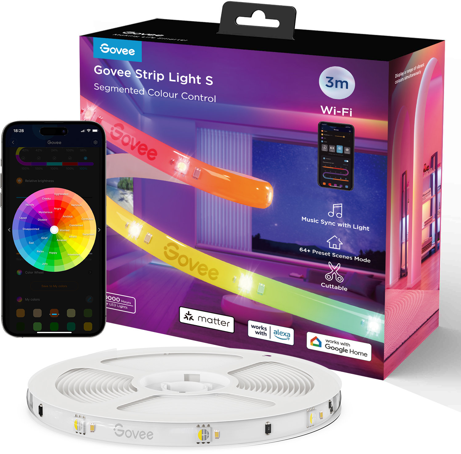 LED pásik 230 V a 24 V – inteligentný, dĺžka 300 cm, stmievateľný, samolepiaci, s diaľkovým ovládaním, 72 LED, nastaviteľná farba svetla, nastaviteľná teplota svetla (2700 – 6500 K), s časovačom, vizualizácia hudby, ovládanie prostredníctvom ovládača, dotyku, hlasu a mobilnej aplikácie, sieťové napájanie, kompatibilný so systémom Android, Windows a iOS, podpora apple Siri skratky, google Home, samsung SmartThings a GOVEE Home, komunikácia s hlasovým asistentom Siri, Google Assistant a Amazon Alexa, energetický štítok G LED pásik Govee WiFi RGBICW Smart PRO, 3 mFarby jednoznačne ovplyvňujú náš život a psychiku. Vyvolávajú v nás rôzne emócie a nálady. Môžu mať upokojujúci alebo stimulujúci účinok, podporovať koncentrá