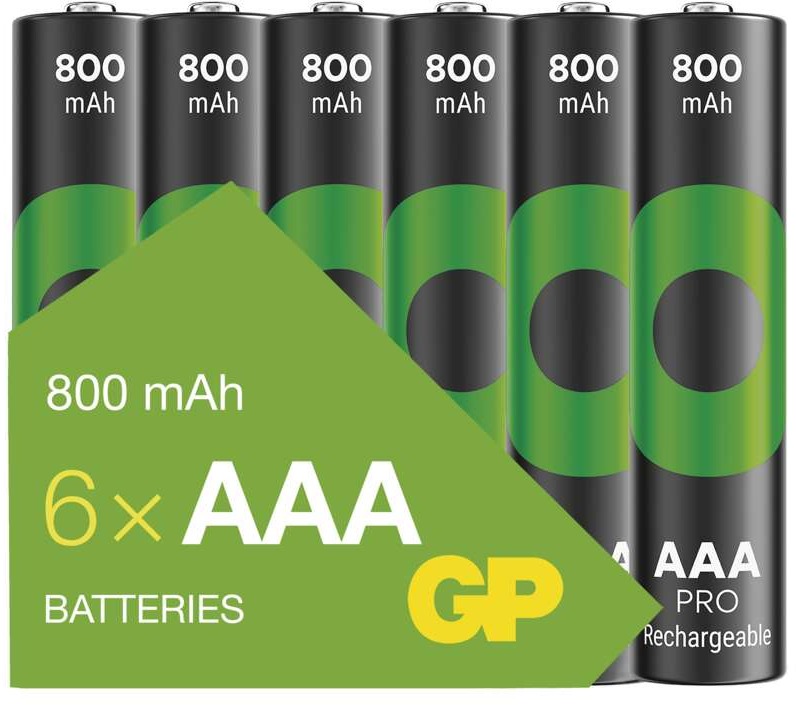 Nabíjateľná batéria mikrotužková AAA, NiMH článok, životnosť 1500 nabíjacích cyklov, napätie až 1,2 V, 0,8 Ah, 6 ks v balení GP Nabíjateľné batérie ReCyko Pro Professional AAA zmenia váš pohľad na batérieNabíjacie batérie NiMH rady Recyko Prosú veľmi výkonné a majú obrovskú životnosť až 1 500 cyklov. Batérie ReCyko Pro sú s
