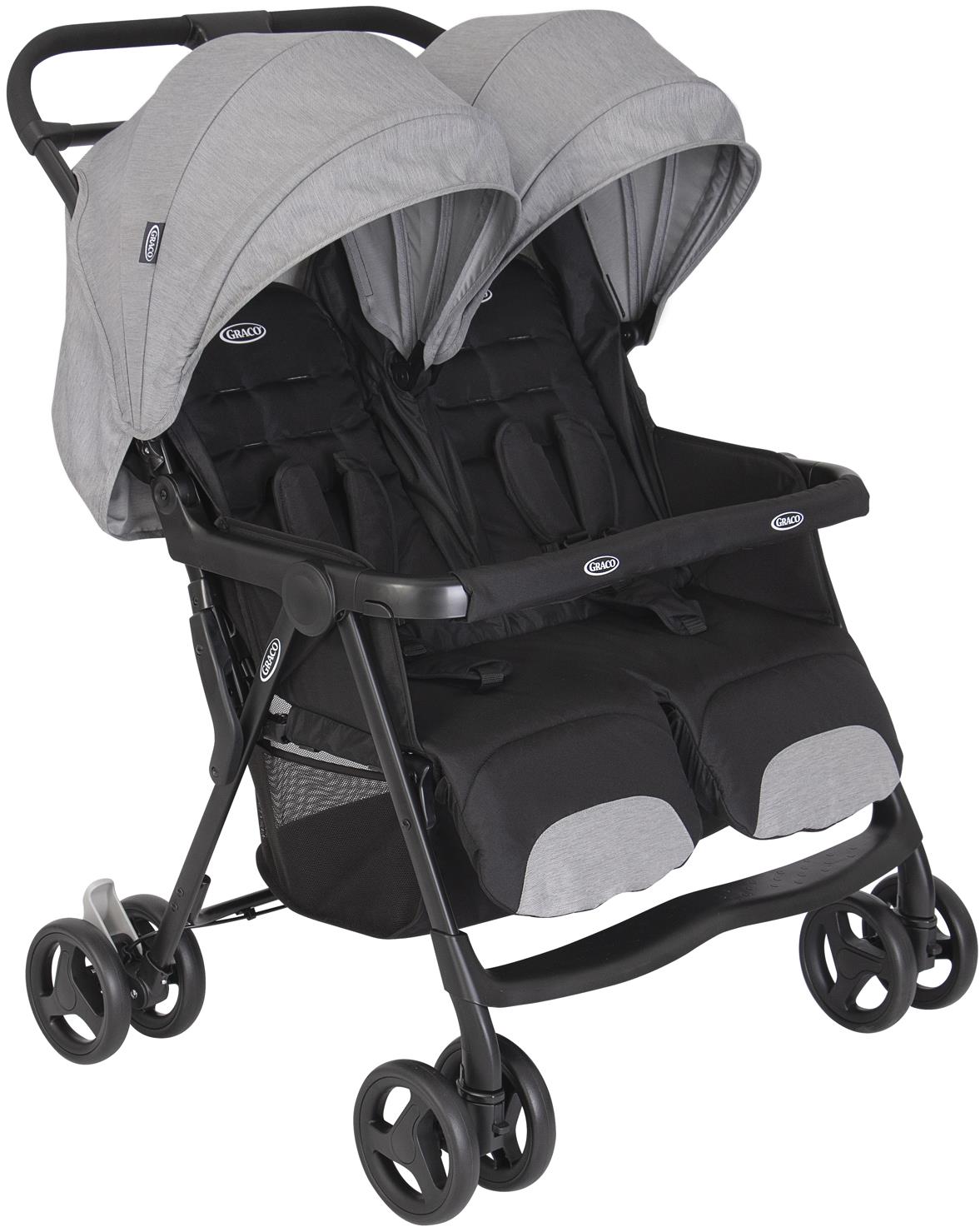 Kočík – športový, do mesta, športová korbička, pogumované otočné kolesá s aretáciou, celoodpružený, päťbodový bezpečnostný pás, polohovanie opierky chrbta, maximálna výška rukoväti 105 cm, maximálna hmotnosť dieťaťa 30 kg, rozmery (zložený) 32 × 49 × 96 cm (V׊×D), rám kočíka, športová sedačka, s pršiplášťom a s úložným košíkom v balení, hmotnosť 12,1 kg Kočík pre dvojčatá GRACO Duorider steeple v sivej farbe ponúka jednoduchú ovládateľnosť a jazdné vlastnosti pre dosiahnutie maximálneho komfortu pre vás aj deti, či už sa venujete pokojnej prechádzke