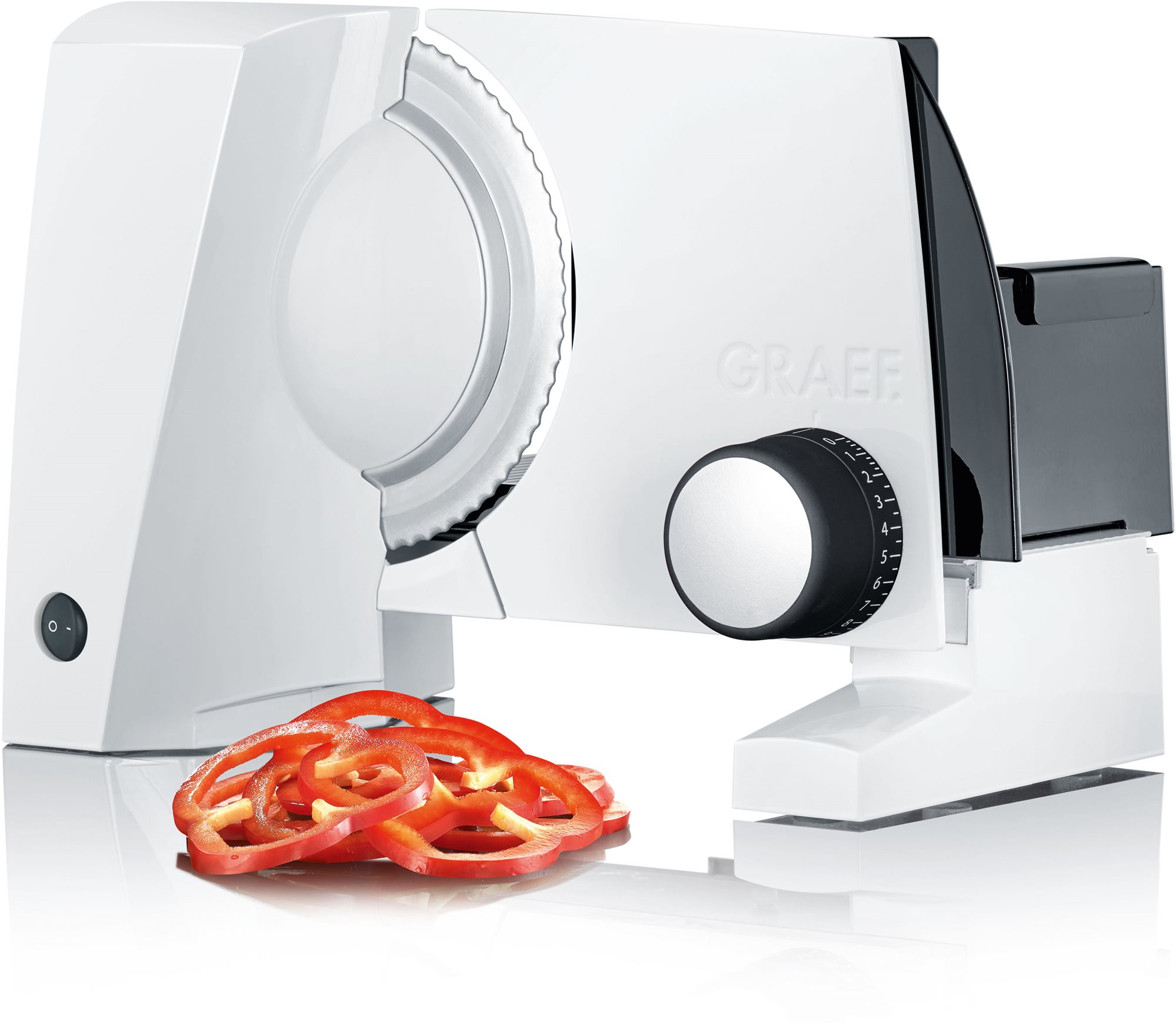 Elektrický krájač – na zeleninu, chlieb a saláma, bezpečnostná poistka, odnímateľný nôž, kryt ostria, nastaviteľné krájanie a trvalý chod, príkon 45 W, max. hrúbka rezu 20 mm, materiál prístroja plast a oceľ, materiál kotúča nehrdzavejúca oceľ, priemer kotúča 170 mm, rozmery 24 × 23 × 32,5 cm (V׊×H), hmotnosť 2,33 kg, biela farba Vďaka svojmu kompaktnému dizajnu si rad SKS100 nájde svoje miesto v každej kuchyni. Je určený pre mladé domácnosti a v konečnom dôsledku pre každého, kto si cení čerstvé a zdravé potraviny. Kovové str