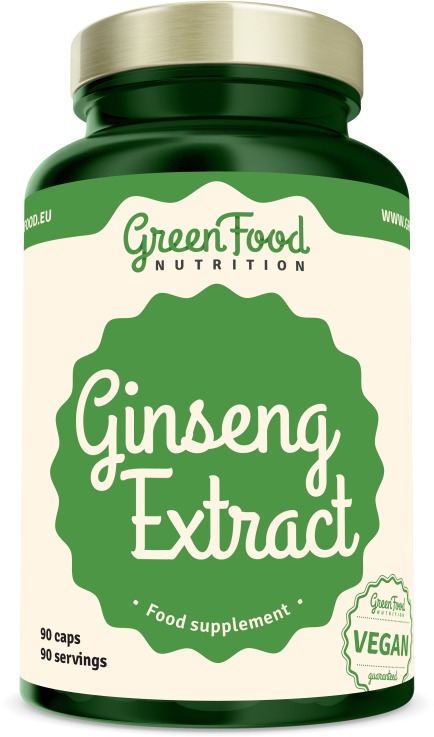 Ženšen – extrakt zo stonky a listov ženšenu pravého, 500 mg v 1 kapsule, bez syntetických aditív, umelých farbív a živočíšnych zložiek, vegan, 90 kapsúl GreenFood Nutrition Ginseng90 kapsúlÁzijský ženšen (Panax ginseng) pochádza z oblastí severovýchodnej Číny, Kórey a Ruska. Je známy svojimi adaptogénnymi vlastnosťami a používa sa v Číne už po tisíce