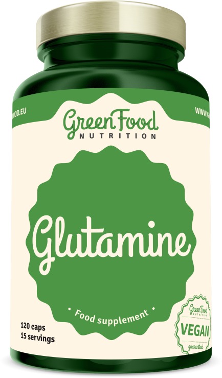 Aminokyseliny – glutamín, bez príchuti, 120 kapsúl GreenFood Nutrition Glutamín120 kapsúlGlutamín je známym a populárnym doplnkom výživy pre športovcov. Je aminokyselinou, ktorá sa vyskytuje v ľudskej krvi v najväčšom pomere a je veľmi dôležitá pre ce