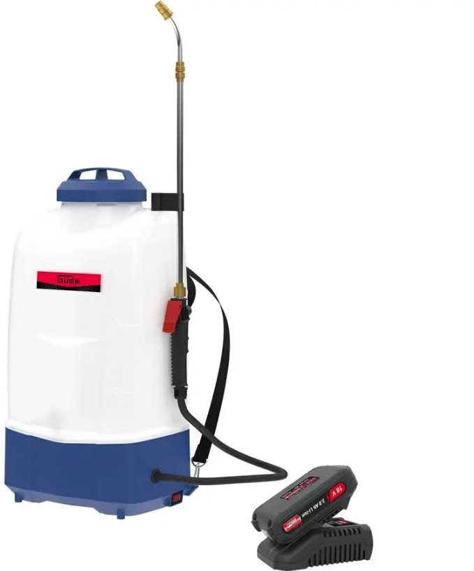 Postrekovač 15 l – na chrbát, akumulátorový, pre hnojivá a vodu, maximálny tlak 4,5 bar, regulácia prietoku, plastová nádrž, akumulátor 2 Ah/18 V, hmotnosť 5,36 kg Akumulátorový postrekovač Güde uľahčí starostlivosť o stredne veľké aj väčšie plochy a zaistí komfortný postrek bez potreby ručného pumpovania. Automatické tlakovanie zaisťuje zabudované čerpadlo, kto