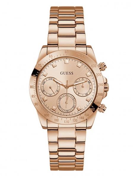 Hodinky dámske – analógové zobrazenie času, strojček quartz, okrúhly ciferník, 24-hodinový režim, dátum, deň v týždni a luminiscenčné prvky, rad Guess, elegantné, bez číslovania, minerálne sklíčko, vodotesnosť 50 m (5 ATM), materiál puzdra oceľ, ružovozlatá…