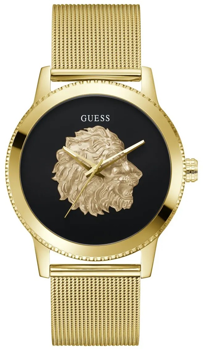 Hodinky pánske – analógové zobrazenie času, strojček quartz, okrúhly ciferník, 12/24-hodinový formát, rad Guess, elegantné, bez číslovania, minerálne sklíčko, vodotesnosť 30 m (3 ATM), materiál puzdra nehrdzavejúca oceľ, zlatá farba puzdra, materiál remienka nehrdzavejúca oceľ, zlatá farba remienka, na obvod zápästia 15 – 20,5 cm, vlastný typ zapojenia GUESS GW0702G1 sú vkusné pánske náramkové hodinky, ktoré nie sú len pomocníkom, ale aj zaujímavým doplnkom. Ponúknu okrúhly ciferník široký 44 mm. Spoľahlivá Quartz technológia je prísľubom čo najdlhš