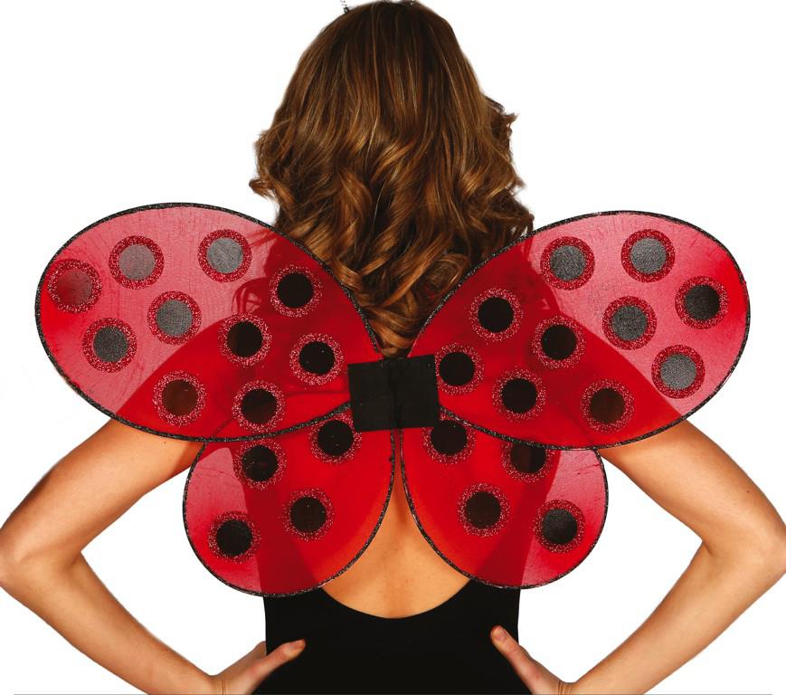 Doplnok ku kostýmu – krídla, na elastické popruhy, s filtrami, červená farba, materiálom je polyester, súčasť balenia: krídla