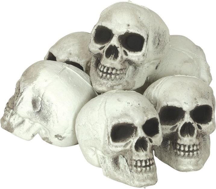 GUIRCA Plastové lebky Halloween 8 cm, 6 ks