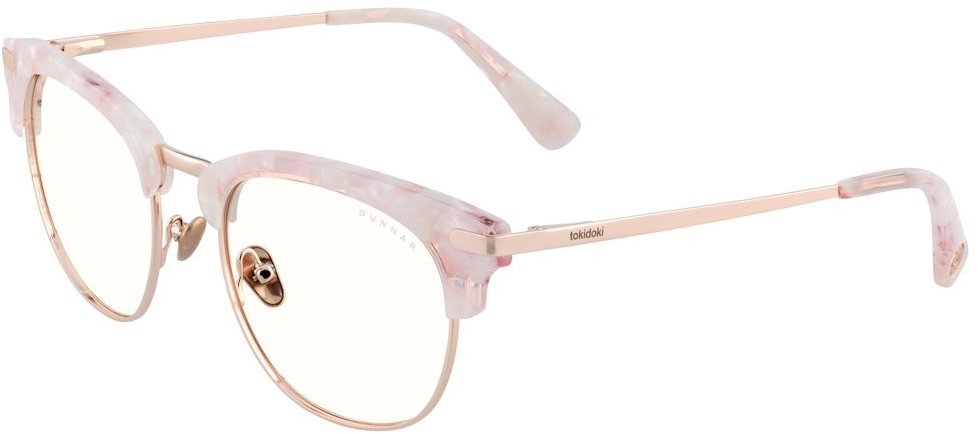 Okuliare na počítač – dámske/dievčenské, na počítač, ochrana proti modrému svetlu 35 %, okrúhle, materiál rámu: kombinácia plast/kov, číra farba skiel, ružová farba rámu, UV ochrana UV400, v balení pevné puzdro, handrička na čistenie a plátené vrecúško, šírka okuliarov 14,2 cm Dámske okuliare na počítač GUNNAR dodávajú 35 % ochranu proti modrému svetlu a tým znižujú námahu očí a predchádzajú poškodeniu zraku pri dlhodobom používaní displejov. Dioptrické okuliare na PC na bl