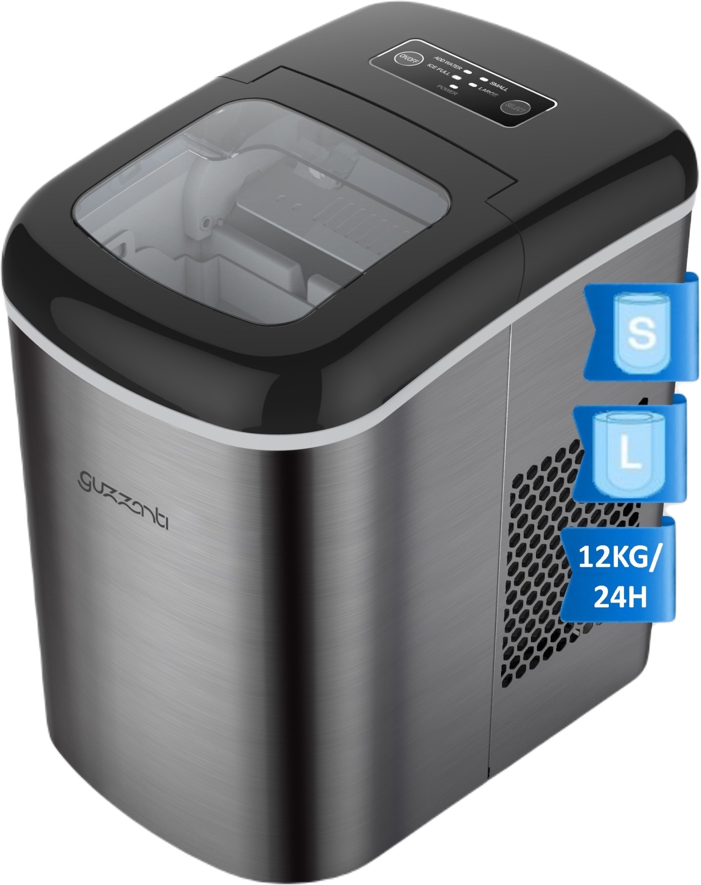 Výrobník ľadu – s výrobnou kapacitou 12 kg za 24 hodín, objem nádoby na vodu 1,9 l s vyberateľnou nádobou na ľad kapacity 0,7 kg, nastavenie veľkosti ľadu a indikátor plného zásobníka, materiál plast, hmotnosť 8,2 kg, strieborná farba Už si neviete predstaviť letné dni bez osviežujúceho nápoja plného ľadu? Potom dajte zbohom zdĺhavej príprave ľadu v mrazničke a vyskúšajte výrobník ľadu. Vďaka využitiu moderného zariadenia na ľad GU