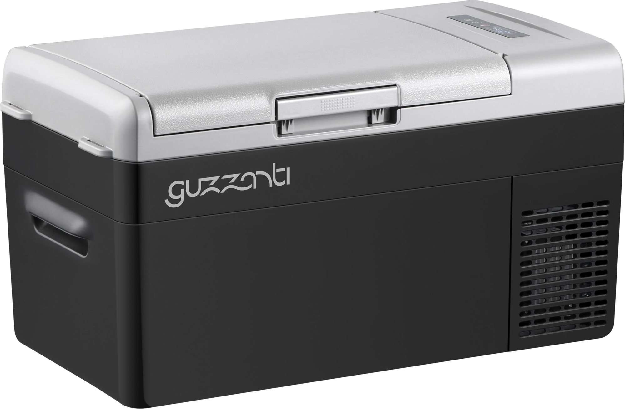 Autochladnička – kompresorová, napájacie napätie 12 V, 24 V a 230 V, objem 20 l, rozsah chladenia od -20 do 20 °C, držadlo a displej, ECO režim, dĺžka 12V kábla 350 cm, dĺžka 230 V kábla 220 cm, hlučnosť 42 dB, príkon 55 W, hmotnosť 11,7 kg, napájací AC adaptér a napájací DC adaptér súčasťou balenia, čierna a sivá farba, energetická trieda E Autochladnička GUZZANTI je užitočná počas dlhých jázd, na dovolenkách či pikniku. Kompresorová autochladnička funguje ako bežná domáca chladnička využívajúca kompresor a chladiace médium a je vhodná n