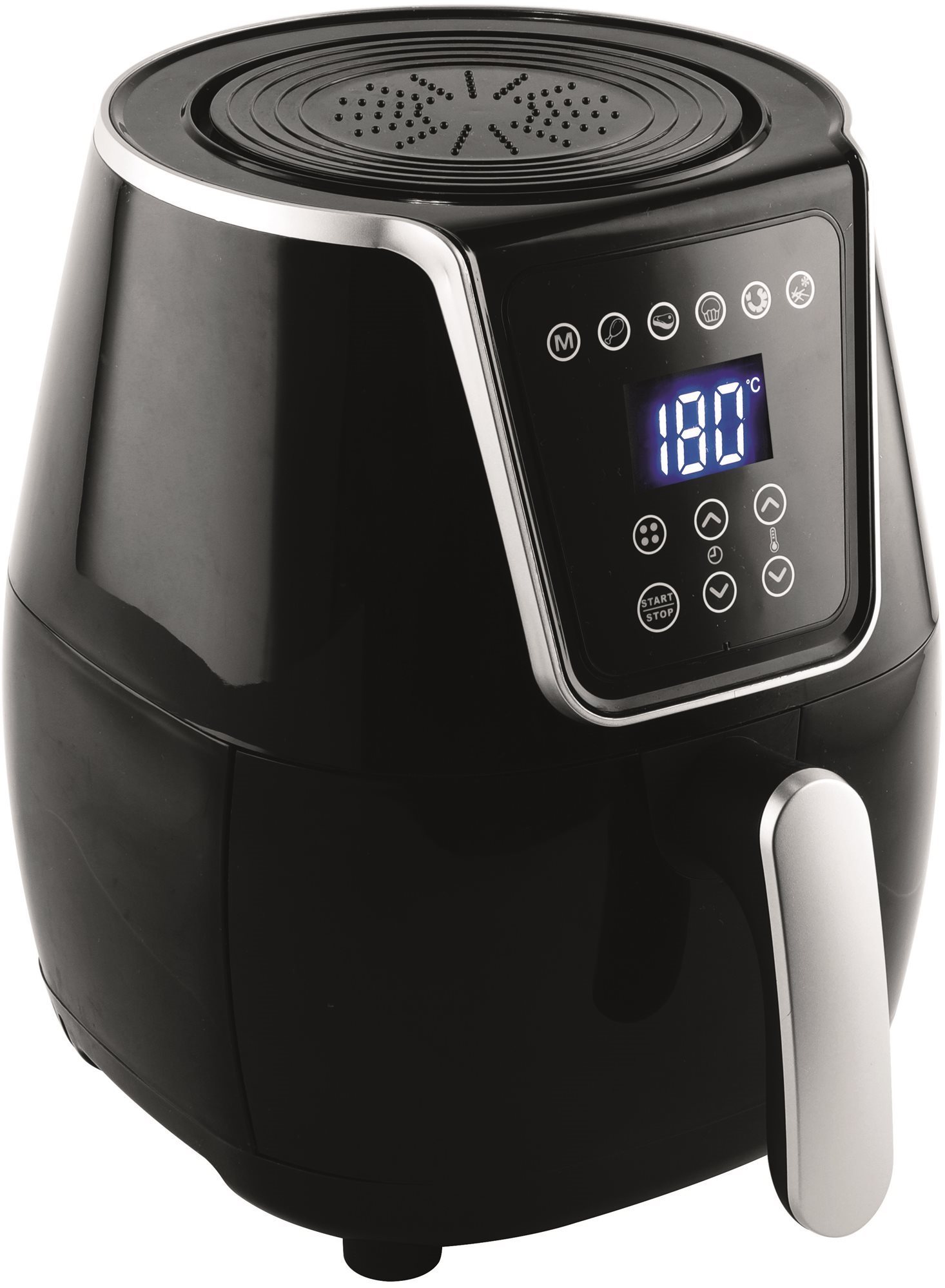 Teplovzdušná fritéza – digitálne ovládanie, nastaviteľná teplota od 80 do 200 °C, s nepriľnavým povrchom, s displejom, časovač a regulácia teploty, 6 programov, fritovací kôš súčasťou, príkon 1500 W, objem nádoby 3 l s nepriľnavým…