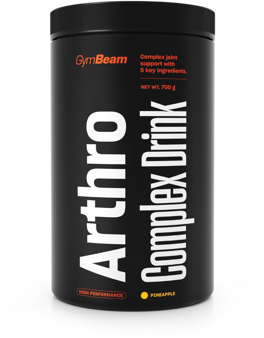 Kĺbová výživa – kombinácia glukozamín sulfátu (1500 mg), MSM (1200 mg) a chondroitín sulfátu (775 mg) v 1 kapsule, obsahuje vitamín C a hovädzí kolagén, príchuť ananás, rozpustný prášok, 700 g GymBeam ArthroComplex Drink ananás700 gArthroComplex Drink je komplexná výživa pre kĺby vo forme dobre rozpustného prášku. Jadro produktu tvorí glukosamín, chondroitín a MSM. Tie potom dopĺňa kolagén