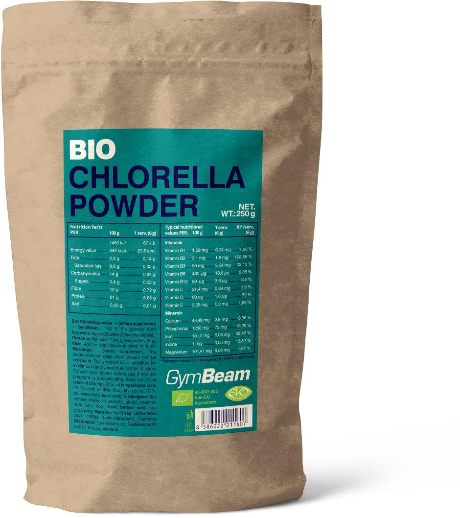 Chlorella – BIO chlorella prášok, zelená riasa bohatá na železo, vitamín B12, B2, B3 a D, prispieva k zníženiu únavy a vyčerpania, ideálny pre vegánov GymBeam BIO Chlorella prášok90 gZelená superpotravina bohatá na bielkoviny, vitamíny a minerálne látky. Patrí medzi vzácne rastlinné zdroje vitamínu D, B12 a železa, ktoré podporujú imunitu, tvorbu če