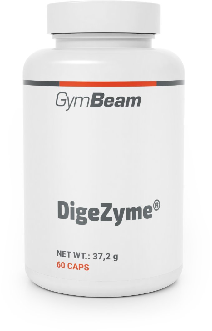 Tráviace enzýmy – patentované enzýmy Digezyme (160 mg) z toho alfa-amyláza (3840 µg), proetáza (960 µg), laktáza (640 µg), lipáza (32 µg) a celuláza (176 µg) v 1 kapsule, bez lepku a laktózy, Non-GMO, 60 kapsúl GymBeam DigeZyme60 kapsúlDigeZyme® je funkčná formula s 5 tráviacimi enzýmami, konkrétne alfa-amylázou, lipázou, proteázou, laktázou a celulázou. Tento komplex vo forme kapsúl je skvelým doplnkom pre