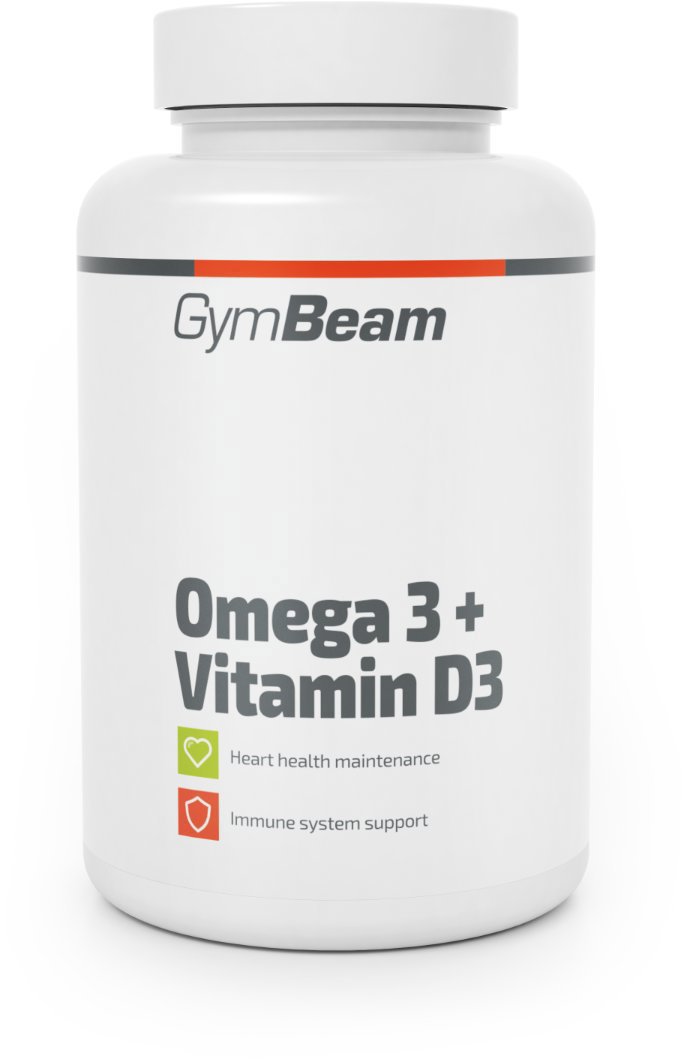 Omega-3 – kombinácia rybieho oleja (1000 mg), z toho omega-3 – EPA (180 mg) a DHA (120 mg) a vitamínu D3 (25 μg) v 1 kapsule, bez lepku a laktózy, pre dospelých, 90 kapsúl GymBeam Omega 3 + Vitamín D390 kapsúlOmega 3 + Vitamín D3 je účinným spojením zdravých tukov v podobe omega 3 mastných kyselín a vitamínu D3. Obsahuje tak kyselinu eikosapentaénovú (EPA) a kyselinu do