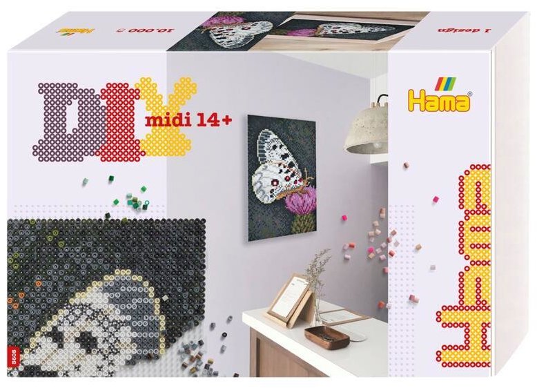 Zažehlovacie korálky – obsahuje cca 10000 kusov zažehľovacích korálikov s priemerom 5mm, 6× podložku veľký napojovací štvorec H234, farebne tlačenú predlohu, zažehľovací papier a návod na použitie, pre deti od 5 rokov Popusťte uzdu své fantazie a vytvořte si malé umělecké dílko pomocí Hama korálků v populární velikosti MIDI. Hama MIDI korálky o délce 5 mm jsou ideální k procvičení trpělivosti, jem