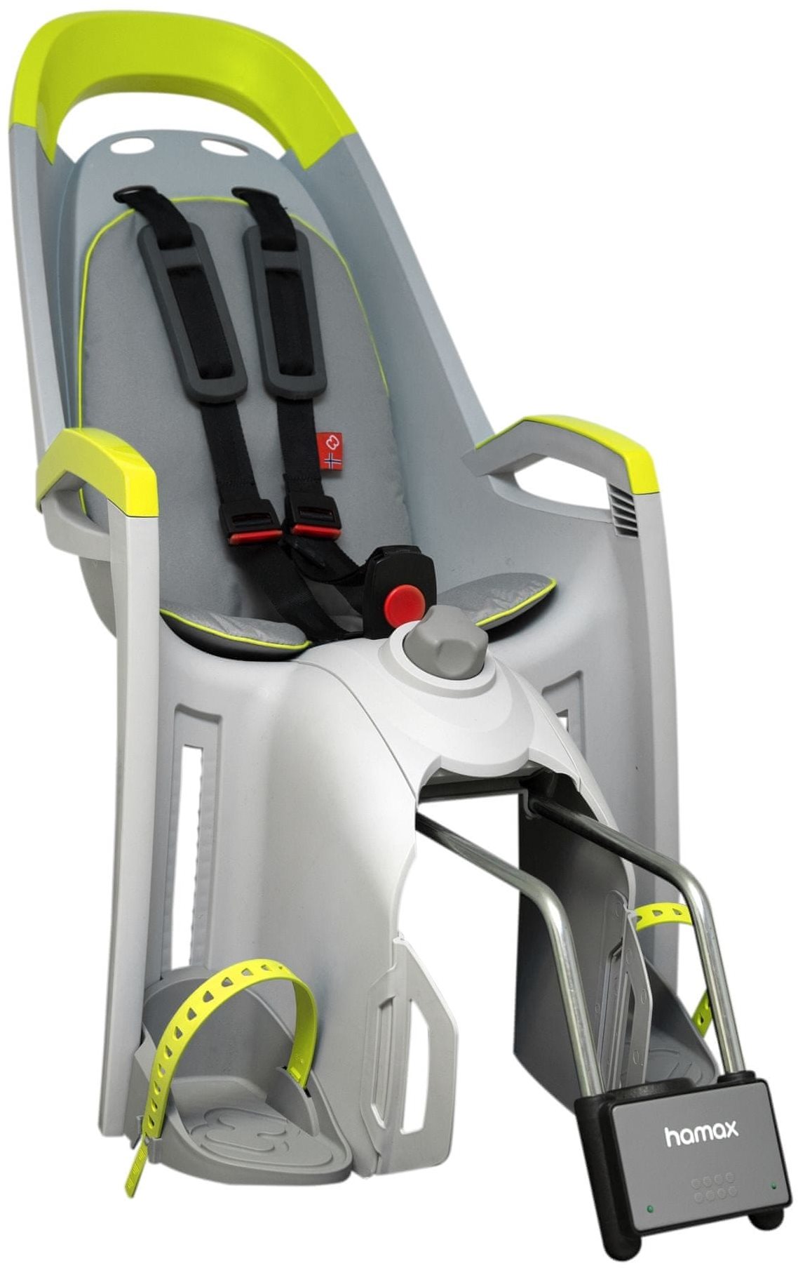 Detská sedačka na bicykel zadné umiestnenie, s prichytením na rámovú sedlovú rúrku, na bicykle veľkosti 26″, 700C, 27,5″ a 29″, rozsah upevnenia: 28 – 40, nosnosť 22 kg, 3-bodový rýchloupínací bezpečnostný pás, hmotnosť 4,4 kg Detská sedačka na bicykel Hamax Amaze je vynikajúcou voľbou pre všetkých cyklistov, ktorí na bicykli chcú voziť malé deti. Zadná sedačka je totiž určená pre deti už od 9 mesiacov a disponuje nosnosťou