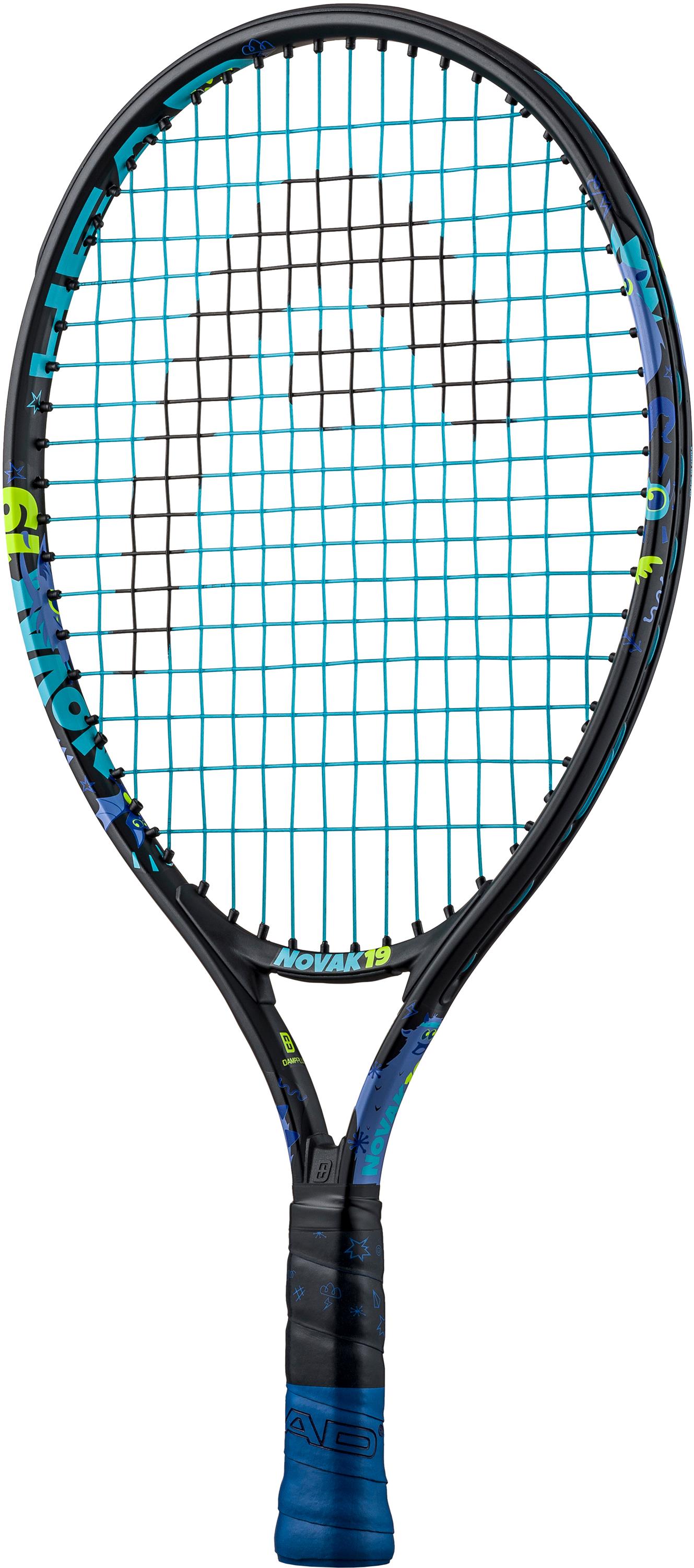 Tenisová raketa vypletená, hmotnosť 175 g, dĺžka 48,5 cm, plocha výpletu 485 cm2 (midsize veľkosť), grip veľkosti 000 19-palcová TENISOVÁ RAKETA NOVAK 19 s farebným a žiarivým dizajnom je ideálna pre chlapcov vo veku 2 až 4 rokov, ktorí s tenisom začínajú. Je pomenovaná po ambasádorovi značky HEAD – Novakovi Djoković