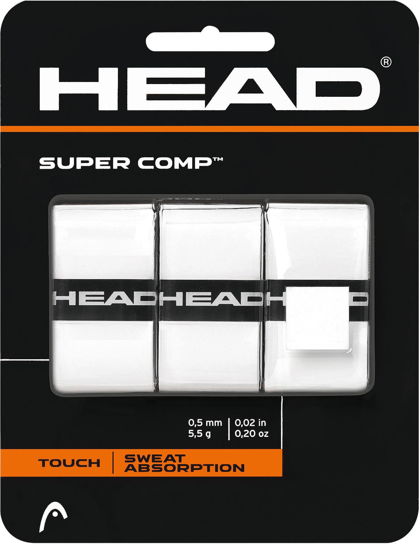 Omotávka na raketu – vrchná, hrúbka 0,5 mm, materiál elastomér, 3 ks v balení, biela farba Head Super Comp predstavuje vrchnú omotávku na tenisové rakety. Ponúka veľmi dobrú priľnavosť a absorpciu aj maximálnu cit.Balenie obsahuje 3 omotávky so silou 0,5 mm, ktoré sú vyrobené zo špeciálneho