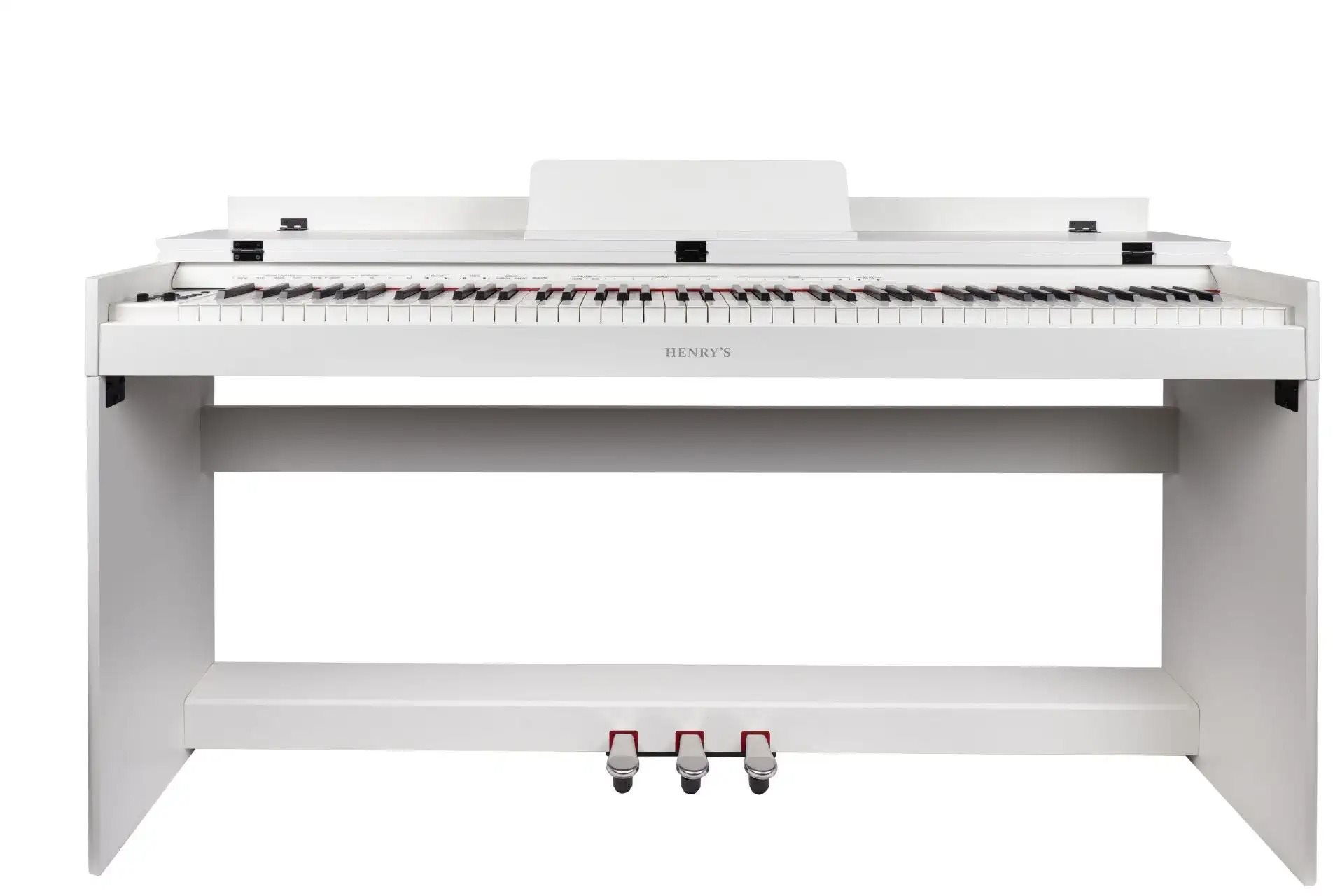 Digitálne piano – 88 klávesov, s nevyváženou klaviatúrou, s dynamikou, povrch klávesov lesklý, 872 zvukov s výkonom 6 W, automatické sprievody, USB a DIN MIDI, vstup na pedál, hmotnosť 29 kg, súčasť balenia je notový pult, pedál a stojan Ak si prajete kúpiť hudobný nástroj, ktorý predstavuje modernú alternatívu klasického piana, určite vás zaujme digitálne piano Henry’s. Bude parádnym dizajnovým kúskom vo vašej domácnosti, zároveň sa