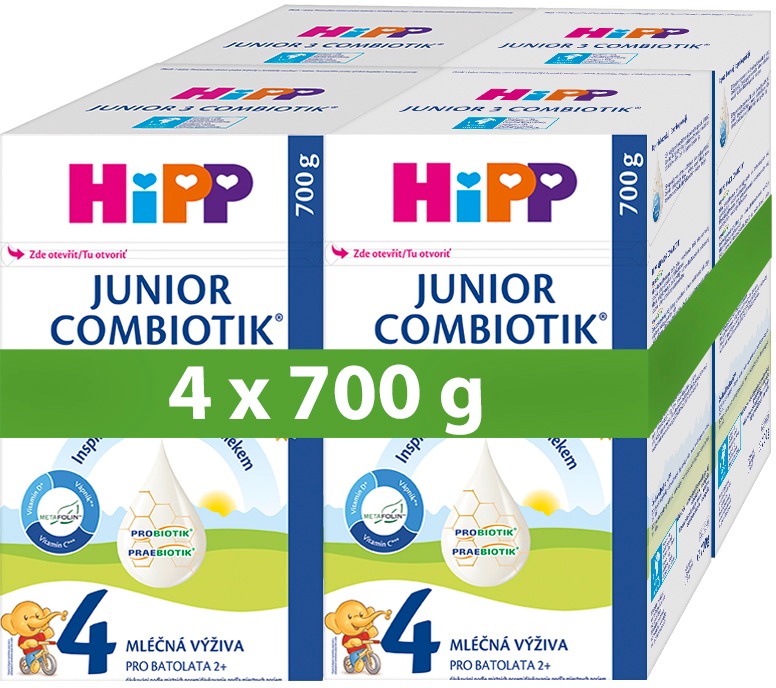 Dojčenské mlieko Hipp Combiotik – batoľacie, bez lepku, pridané vitamíny a minerály, s probiotikami a s prebiotikami, vhodné od 24 mesiace, veková kategória 4, celková hmotnosť 2800 g, 4 kusy v balení Malé deti nie sú malí dospelí – to platí obzvlášť pre výživu. S vekom dieťaťa sa mení potreba príjmu živín. U malých detí klesá potreba príjmu energie z tukov. Na rast a vývin potrebujú ale veľa vápni