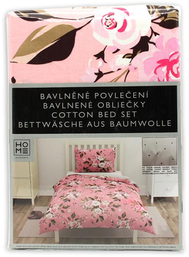 Obliečky – súprava vankúša a prikrývky, materiál bavlna, obojstranné, rozmery obliečky na vankúš 90 × 70 cm (Š×D), rozmery obliečky na paplón 200 × 140 cm (D׊), ružová farba Súprava obliečok HOME ELEMENTS ponúka obliečku na prikrývku s rozmermi 140 × 200 cm (Š × D) a obliečku na vankúš, ktorá meria 90 × 70 cm (Š × D). Je možné ju používať z oboch strán na jednoduché a var