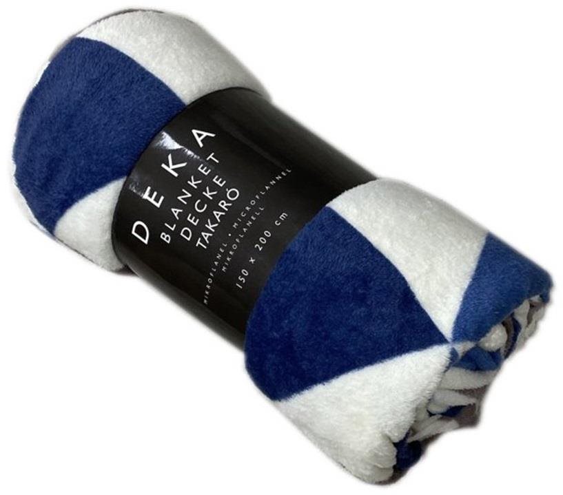 Deka – celoročná, materiál mikroflanel, rozmery 150 × 200 cm, biela a modrá farba Deka HOME ELEMENTS má rozmery 150 × 200 cm. Povrch mikroflanelu je hebký a príjemný pri kontakte s pokožkou. Bola navrhnutá tak, aby ste sa v nej cítili dobre v lete aj v zime. Televízna deka umožňuje