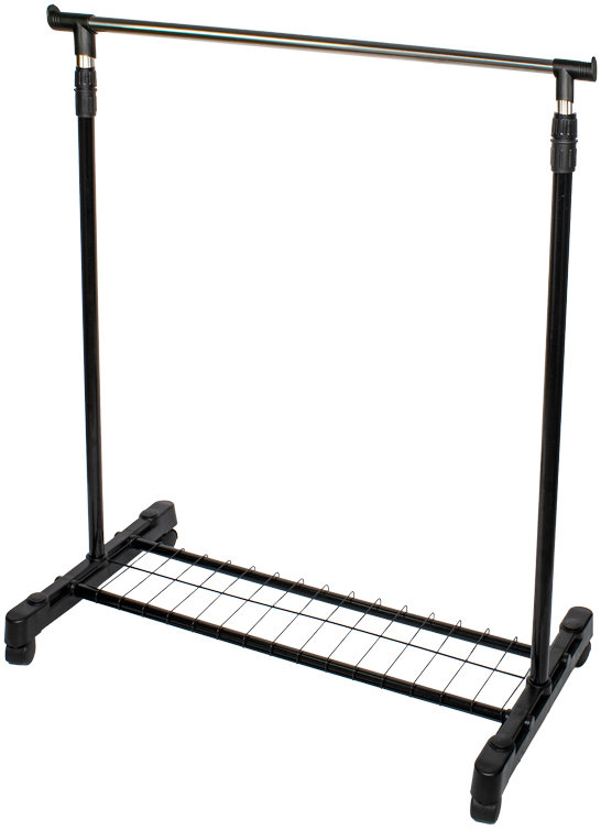 Stojan na oblečenie – materiál: oceľ a plast, rozmer: 160 × 78 × 42 cm (V׊×H), farba: čierna a strieborná Pojízdný stojan na šaty HomeLife Single slouží jako přehledné úložiště oblečení na ramínkách. Výškově stavitelná závěsná tyč se přizpůsobí délce kabátů i košil. Díky čtyřem kolečkům můžete