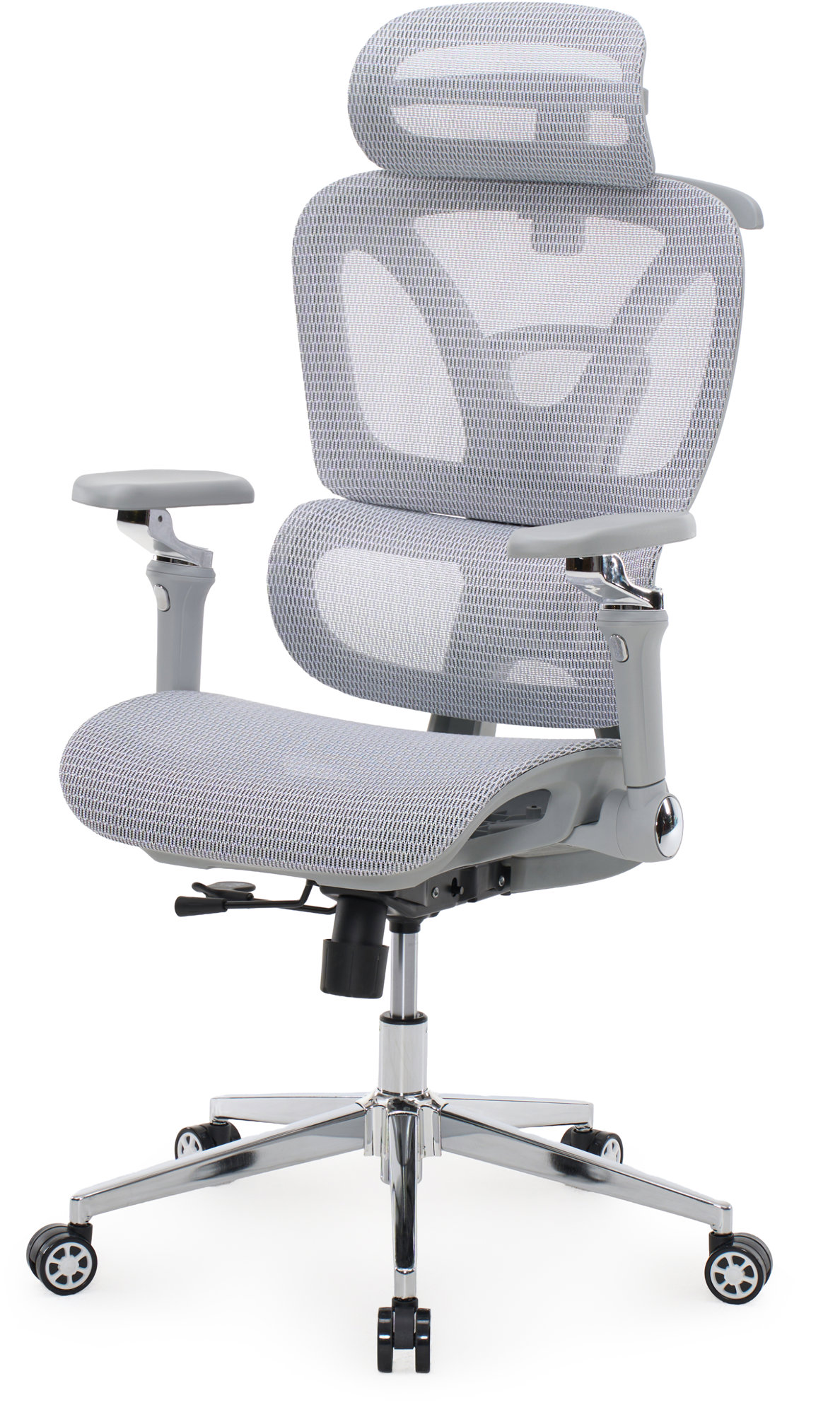 Kancelárska stolička – otočná a ergonomická so synchrónnou mechanikou, nosnosť 120 kg, anatomicky tvarované sedadlo s nastaviteľnou výškou, bedrová opierka, opierka hlavy s nastaviteľnou výškou, operadlo s nastaviteľným sklonom, podrúčky s možnosťou nastavenia posunu dopredu/dozadu, výšky, rotácia vrchnej časti, s podnožkou, plastové kolieska, plastová konštrukcia, materiál poťahu sieťovina, materiál nôh kov, rozmery 62 × 60,5 cm (Š×H), nutná montáž, hmotnosť 18 kg Vytvorte si pracovné prostredie, ktoré vám bude maximálne vyhovovať. Kancelárska stolička HOMEPRO vyhovie špecifickým požiadavkám každého, kto je dlhé hodiny pri počítači. Pomocou nastavenia sklonu op