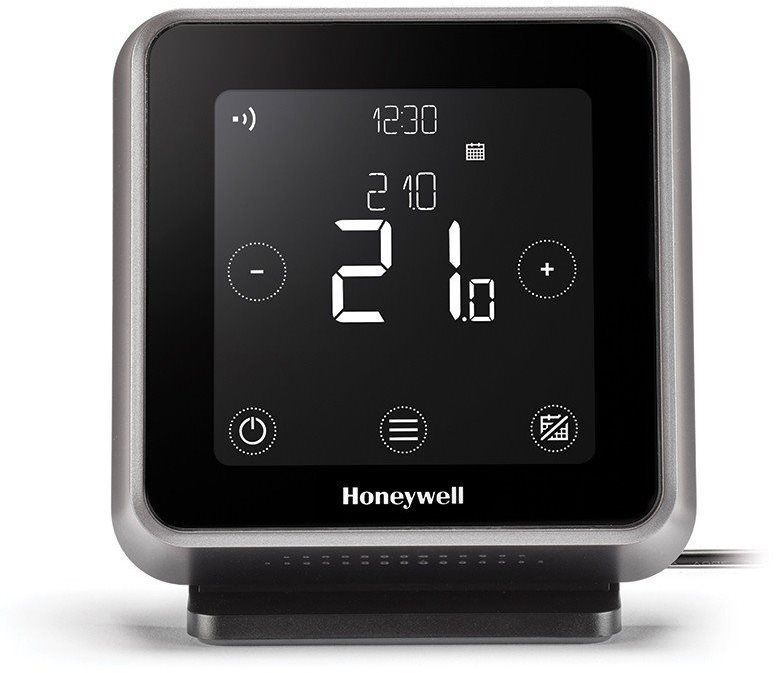 Termostat – izbový, pripojenie cez WiFi 2,4 GHz, inteligentný, programovateľný, digitálny, vstupné napätie 5 V, dotykový displej, režim ECO, dovolenka, automatický, manuálny a nočný, nastaviteľná teplota od 5 do 35 °C, otvorený systém, funkčný samostatne, podporuje Android a iOS, kompatibilný s Apple Home, Siri, Google Assistant a Amazon Alexa, sieťové nabíjanie Smart termostat Honeywell Lyric T6R je bezdrôtový variant s možnosťou umiestnenia na vodorovnú plochu, ktorá ponúka pohodlné riadenie vykurovania a úsporu energie. Umožňuje nastavenie týždenného vykur