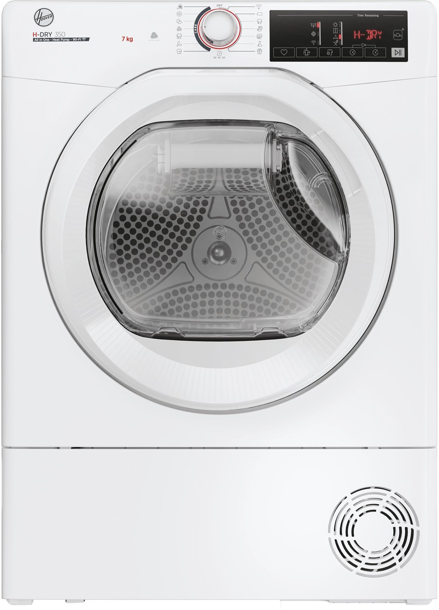 Sušička prádla – úzka, kondenzačná, samostatne stojaca, energetická trieda (nové označenie E), účinnosť sušenia C, maximálne množstvo bielizne 7 kg, hlučnosť 67 dB, spotreba energie 112 kWh/100 cyklů, odložený štart, tepelné čerpadlo a displej, možnosť pripojenia cez WiFi a Bluetooth, kompatibilná s Google, Amazon Alexa a hOn, mobilná aplikácia, rozmery 85 × 59,6 × 48 cm (V׊×H), hmotnosť 37,5 kg, súprava na pripojenie odpadu nie je súčasťou balenia, nádoba na kondenzát súčasťou balenia HOOVER H-DRY 350 SLIM – spoľahlivá sušička so šetrnou starostlivosťou a smart ovládanímH-DRY 350 SLIM je moderná sušička bielizne, ktorá kombinuje maximálnu šetrnosť k tkaninám, špičkové technológie a