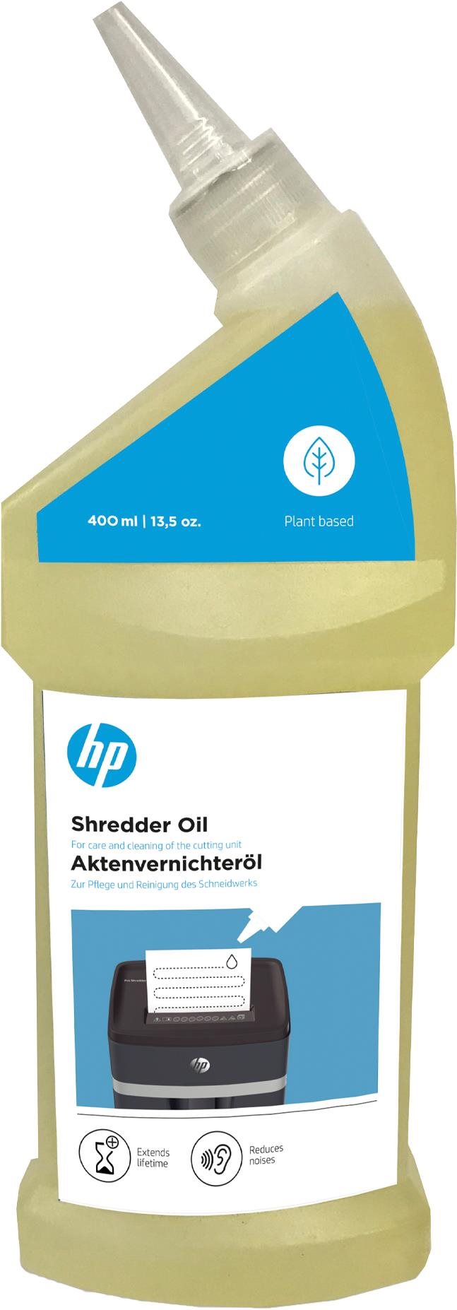 Olej do skartovačky – údržbu skartovačiek HP aj iných výrobcov, rastlinný pôvod, balenie 400 ml v uzatvárateľnej dávkovacej fľaši, pomáha zaistiť dlhú životnosť a tichú prevádzku skartovačov Olej HP je speciálně určený do skartovačů HP i jiných značek. Přispívá k dlouhé životnosti a tichému chodu skartovačů. V průběhu času se ve skartovačích hromadí prach a zbytky papíru, které ol
