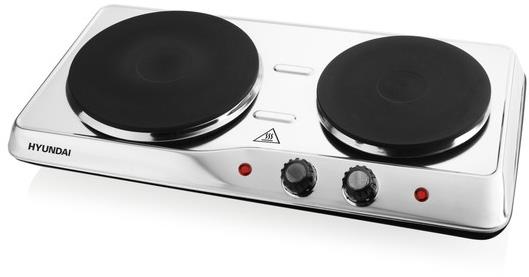 Elektrický varič s príkonom 2500 W, počet platničiek 2, priemer platne 18,5 cm, termostat, protišmykové nožičky a nastavenie teploty, rozmery 25 cm × 47,5 cm × 8,5 cm, farba nerez Nerezový elektrický varič Hyundai EP 310 je ideálny na chalupu, chatu, alebo do menšej kuchyne. Má dve liatinové platne s priemerom 18,5 a 15,5 cm a každá platňa má vlastný regulovateľný termostat pre