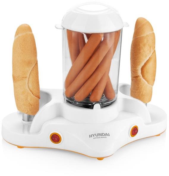 Hotdogovač príkon 380 W, určený na 12 párkov, počet nadstavcov: 2, funkcie: varenie kukurice, príprava zeleniny v pare, rozpekanie pečiva a varenie vajec Hotdogovač Hyundai v bielej farbe so svojou kapacitou zvládne pripraviť až 12 párkov naraz. Multifunkčné zariadenie si poradí nielen s prípravou párku, ale v prípade výmeny plastového nástavca vie v p