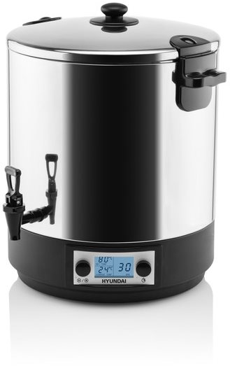 Zavárací hrniec – elektrický, objem 25 l, vo výbave displej, termostat, časovač, automatické vypnutie a regulácia teploty, príkon 2000 W, pokrievka súčasťou balenia, rozmery 49 × 45 × 44,5 cm (V׊×D), hmotnosť 4,8 kg, strieborná farba Zavárací hrniec Hyundai je ideálny na uchovanie úrody zo záhradky po celý rok. Okrem klasického zavárania ovocia a zeleniny hrniec zvládne aj varenie, blanšírovanie zeleniny, či ohrev jedla alebo piti
