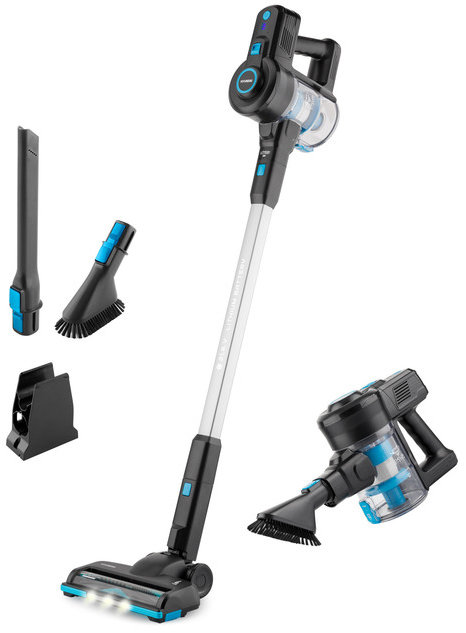 Tyčový vysávač – 2 v 1, bezvreckový, aku, na všetky druhy podláh, na suché čistenie, na Li-Ion batérie, doba chodu 30 min, doba nabíjania 4,5 h, indikátor nabíjania, sklopná rukoväť a svetelné kontrolky, bez oklepu,…