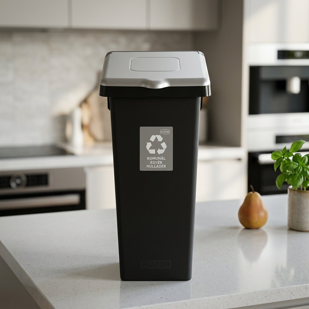 Odpadkový kôš – objem 53 l, voľne stojacia, materiál plast, čierna farba, ručné otváranie, systém soft close, rozmery 73 × 36 × 33 cm (V׊×H) Odpadkový kôš je nevyhnutným pomocníkom v každej domácnosti alebo kancelárii. Tento kôš na triedený odpad Igotrend vám vďaka oddeleným nádobám zjednoduší triedenie odpadu. Ponúkaný variant má objem 53