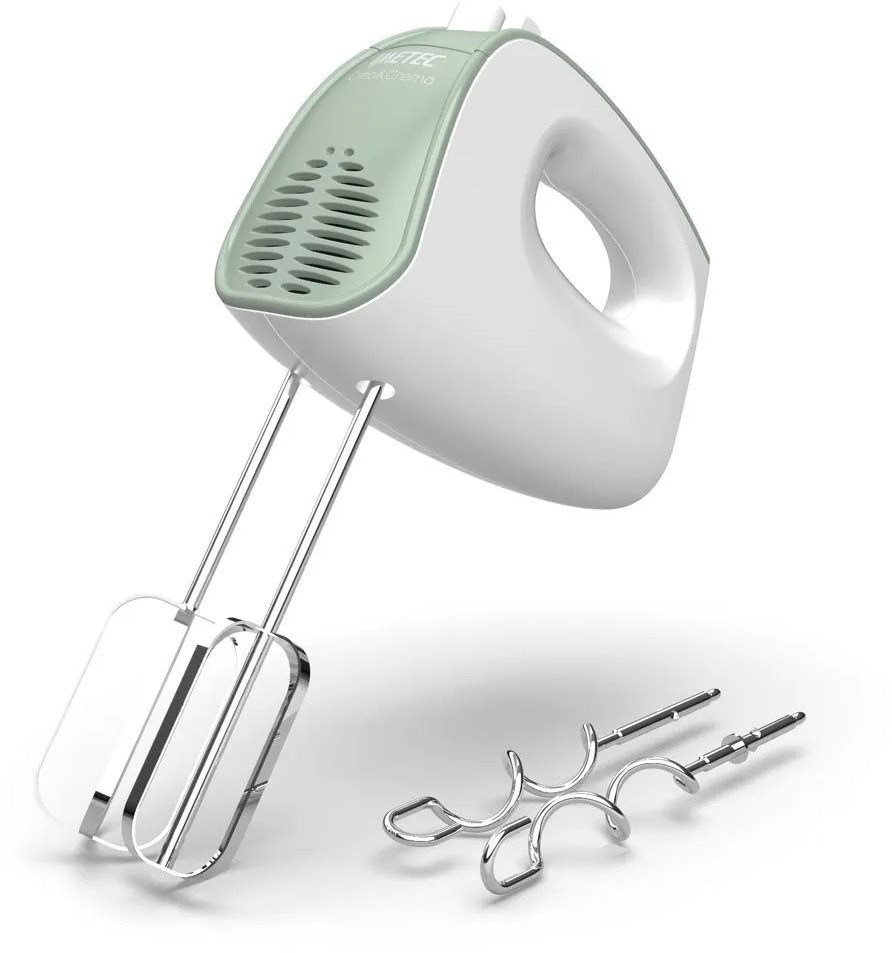 Ručný mixér – príkon 500 W, 5 rýchlostí, miesiace metly a šľahacie metly súčasťou balenia, určený na: mixovanie a šľahanie, 1200 ot./min, pulzný spínač a tlačidlo na uvoľnenie metiel, dĺžka kábla 1 m, biela farba Praktický ručný mixér Imetec vám zjednoduší prácu pri príprave krémov a snehu. Budete si pochvaľovať jeho kompaktné rozmery aj intuitívne umiestnené ovládacie prvky. Má motor s príkonom 500 W, ktorý v