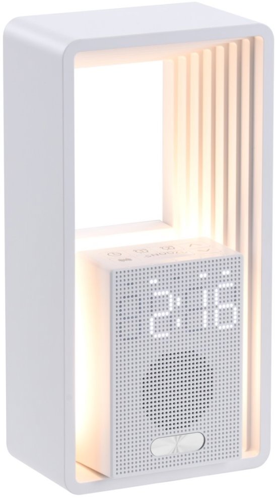 Dekoratívne osvetlenie – multifunkčný budík s dual alarmom, bielym šumom, nastaviteľným nočným svetlom a časovačom 30/60/90 min, Snooze odloženie, USB nabíjanie telefónu a deväť relaxačných zvukov pre pokojný spánok aj príjemné vstávanie