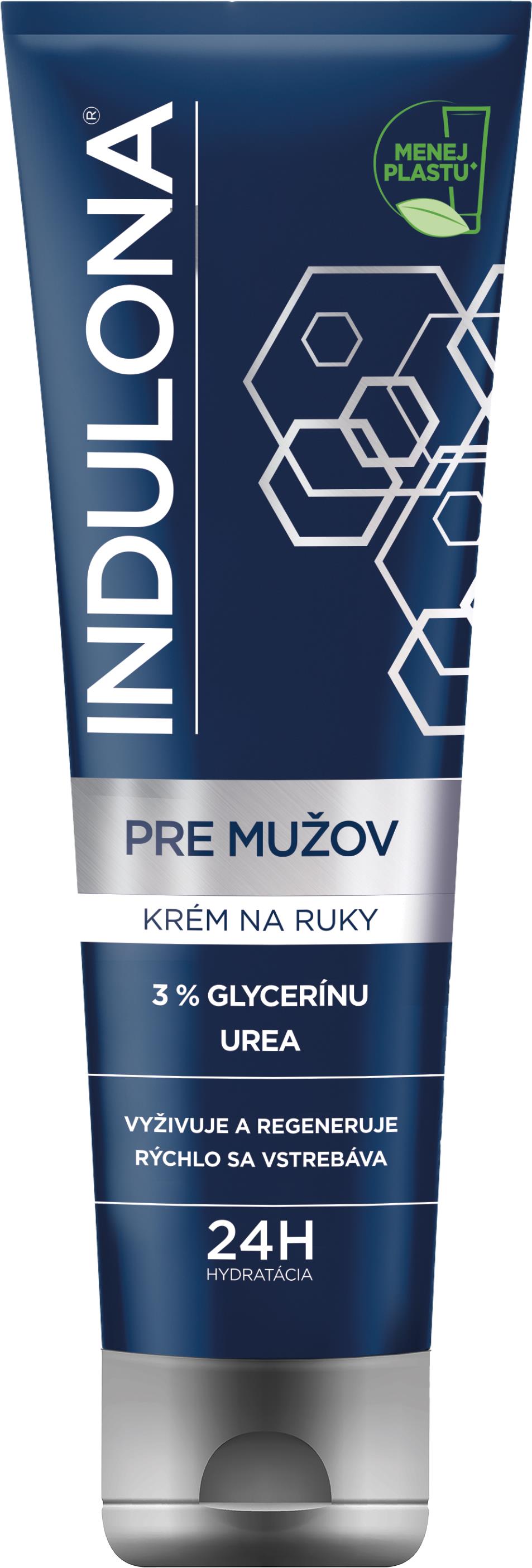 Krém na ruky – pánsky, hydratačný a regeneračný, na popraskanú kožu a na suchú pokožku, na mastnú, normálnu, zmiešanú, suchú a zrelú pokožku, s prírodným olejom, na každodenné použitie, aktívne látky glycerín, olivový olej a urea, objem 75 ml Krém na ruky INDULONA Pre mužovKoža na rukách prechádza každodennou záťažou. Časté umývanie, práca v záhradke, manuálne činnosti, to všetko negatívne pôsobí na pokožku rúk, ktorá sa tak vysušuje a môž