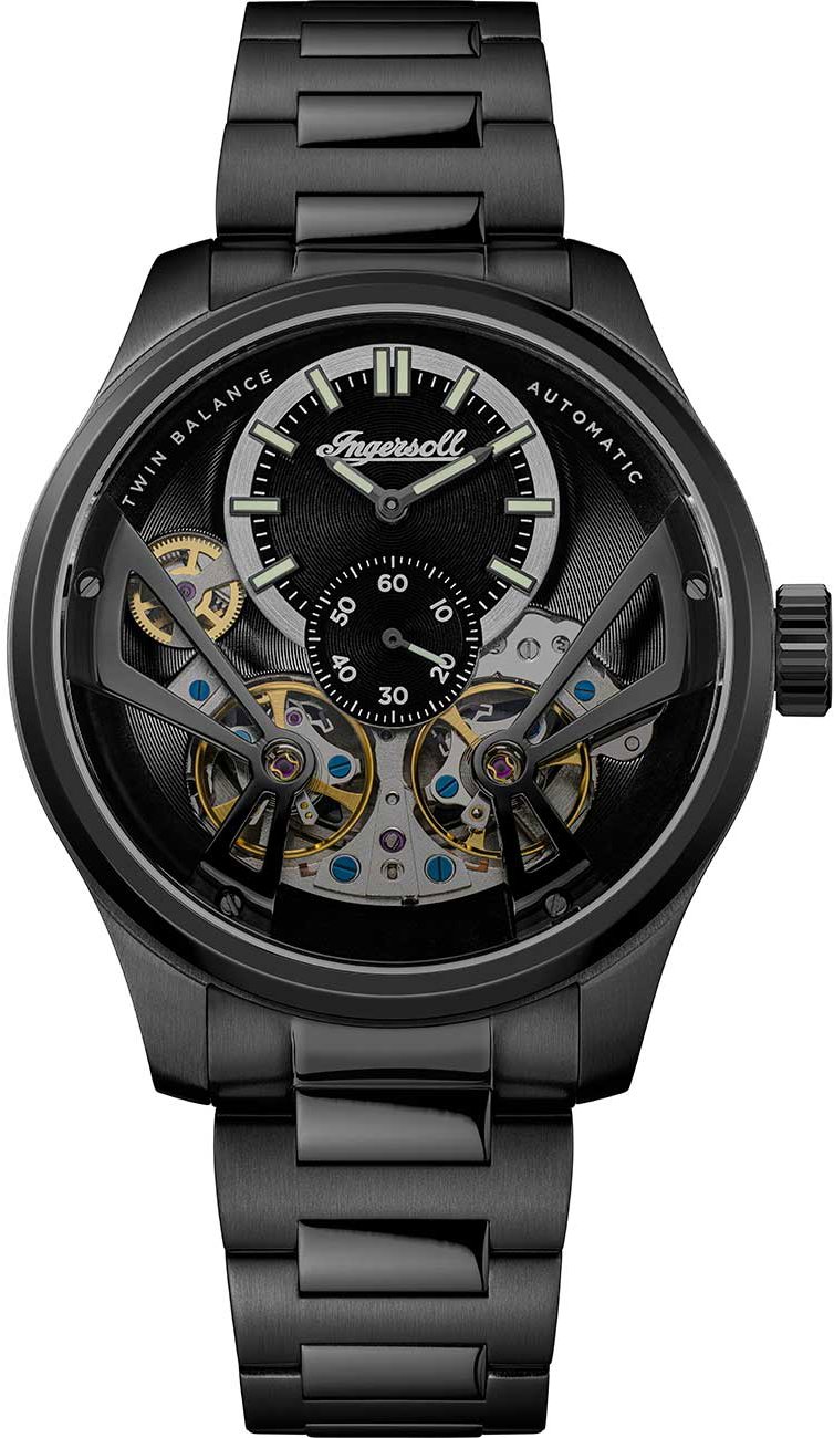 Hodinky pánske – analógové zobrazenie času, automatické, okrúhly ciferník, elegantné, bez číslovania, minerálne sklíčko, vodotesnosť 50 m (5 ATM), materiál puzdra nehrdzavejúca oceľ, čierna farba puzdra, materiál remienka nehrdzavejúca oceľ, čierna farba remienka, na obvod zápästia 16 – 22 cm Ingersoll I16102 The Naismith Automatic 46 mm 5 ATM sú vkusné pánske hodinky na ruku, s ktorými zaručene zaujmete svoje okolie. Nájdete na nich okrúhly ciferník s priemerom 38 mm. Strojček s automatic