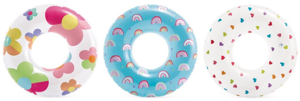 Nafukovacie koleso – do vody, pre deti a dospelých, viacfarebný, nosnosť 40 kg, materiál PVC, rozmery 81 × 81 cm (Š×H) , 1 ks v balení , nie je možné zvoliť si konkrétny variant produktu Hlavní vlastnosti produktu Intex Kruh Připravte se na pobyt u vody s kruhem pro mladší děti a starší děti a dospělé INTEX Je spolehlivou pomůckou ideální pro ratolesti od 8 let Kruh je ideální pro je