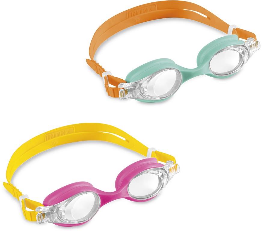 Plavecké okuliare – detské, rekreačné, pre deti veku 5 – 8 rokov, číre zorníky, pevný nosník, s gumovým tesnením, oranžová a žltá farba Plavecké okuliare INTEX sú určené deťom vo veku 5 – 8 rokov. Chránia oči a umožňujú potrebnú orientáciu pod vodou pri voľnočasových aktivitách. Disponujú čírymi zorníkmi, ktoré umožňujú jasné videnie