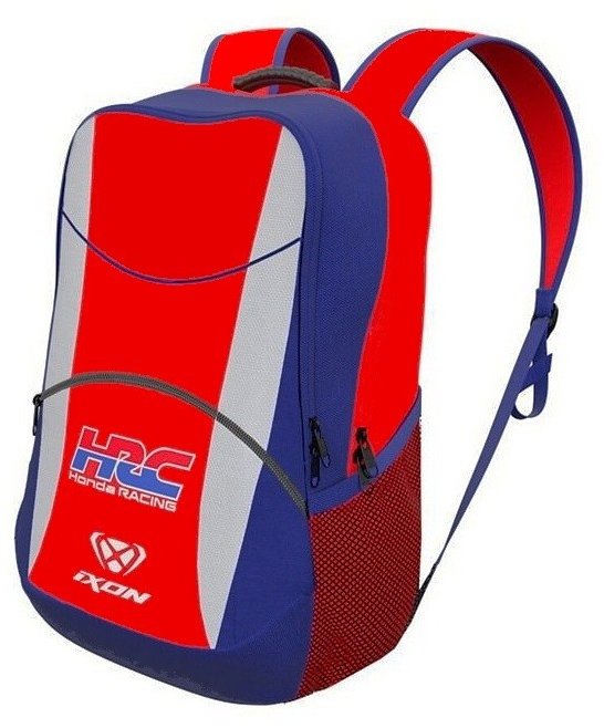 Moto batoh – objem 23 l, predné vrecko, zapínanie na dvojcestný zips, nastaviteľné popruhy, materiál polyester, rozmery 42 × 32 × 18 cm (V׊×H) teamový batoh HONDA HRC Racing barva červená materiál 100% polyester rozměry : 42 x 32 x 18 cm (V x Š x HL) obsah 23 litrů 2 nastavitelné popruhy pružné boční kapsy barva : červeno-modrá