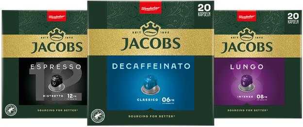 Kávové kapsuly – na káva bez sušeného mlieka, zmes kávových odrôd, dark (intenzita 12), veľkosť šálky Espresso a Lungo, materiál kapsuly hliník, 60 kapsúl v balení Jacobs Wunderbar MixPack s Decaffeinato60 ksKávové kapsuly Jacobs Wunderbar MixPack s Decaffeinato Nespresso vám umožnia ochutnať tri druhy lahodnej kávy, a to intenzívne espresso, intenzívne lungo so