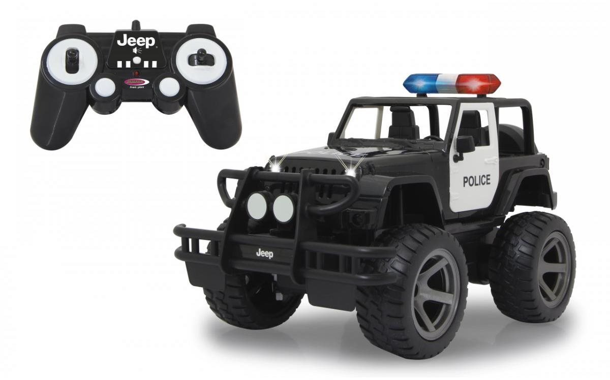 RC auto – policajné a cestné, rozmery 21 × 18,5 × 34 cm (V׊×D), vhodné na von, elektrický jednosmerný motor, náhon na 2 kolesá, LED svetlá a gumové pneumatiky, svetelné a zvukové efekty, maximálna rýchlosť 10 km/h, dosah prenosu 25 m, autíčko na 5 AA batérií, ovládanie, ovládač na 2 AA batérie (nie sú súčasťou balenia), doba chodu až 60 min Pútavá moderná hračka, ktorá nedá šancu nude, práve to je Jeep Wrangler Polícia 1:12 2,4 GHz. Auto na ovládanie je zhotovené v mierke 1 : 12. Je stavané na chod vo vonkajších podmienkach. Keď sa dá do