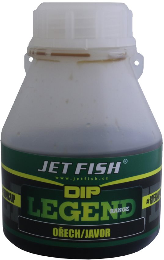 Dip v tekutej podobe, príchuť: javor a orechy, hmotnosť balenia 175 g, zatraktívňuje nástrahy na ryby Dip Jet Fish Legend je doplnený o aminokyseliny a niekoľko druhov tekutých potráv HNV. Nadipovaná nástraha vo vode uvoľňuje potravinový signál, ktorý kaprom pripomína ich prirodzenú potravu v tej najk